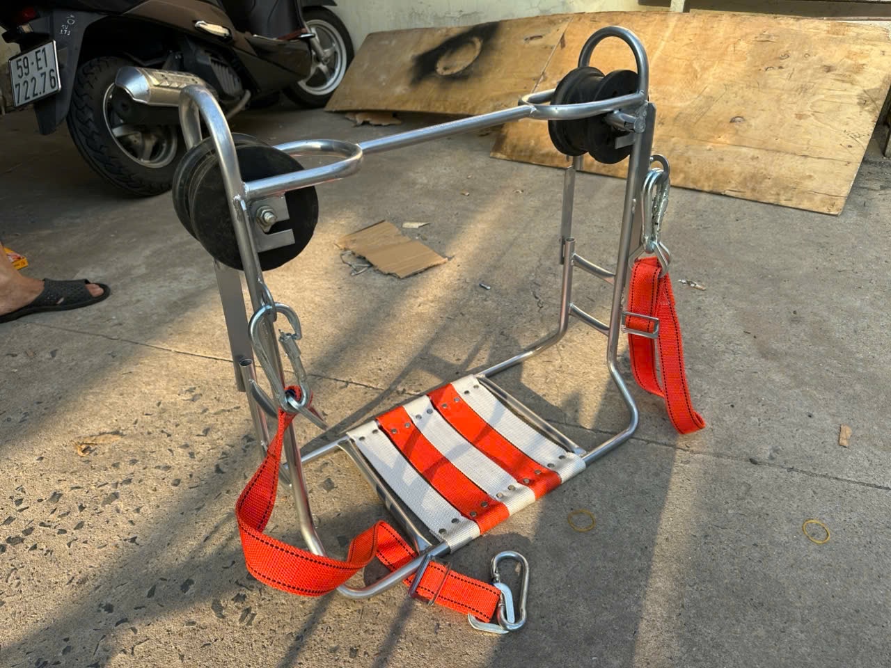 • Chỗ ngồi hoặc đai treo: Có lớp đệm cao su hoặc vải dù chịu lực.
