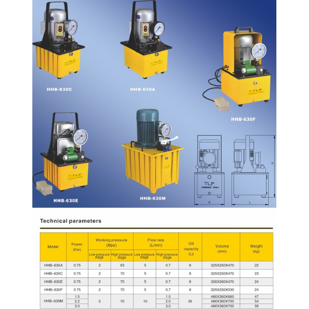 Bơm điện thủy lực hiện nay được sản xuất bởi rất nhiều thương hiệu, có kiểu dáng, mẫu mã và thông số kĩ thuật rất khác nhau, Do đó khi bơm được các đại lý phân phối sẽ có giá thành rất khác nhau. Những thương hiệu sản xuất bơm điện có chất lượng hiện nay gồm TLP/Trung Quốc và TONNERS/Hàn Quốc. Tuy thương hiệu TLP của Trung Quốc nhưng những sản phẩm thủy lực của thương hiệu này được người dùng đánh giá là rất tốt, bao gồm cả bơm điện thủy lực.